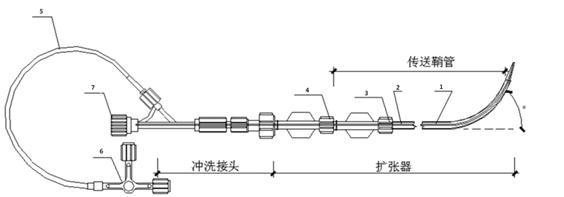 1.擴(kuò)張器導(dǎo)管;2.傳送鞘管導(dǎo)管;3.傳送鞘管座;4.擴(kuò)張器座;5.延長(zhǎng)管;6.三通閥;7.止血閥